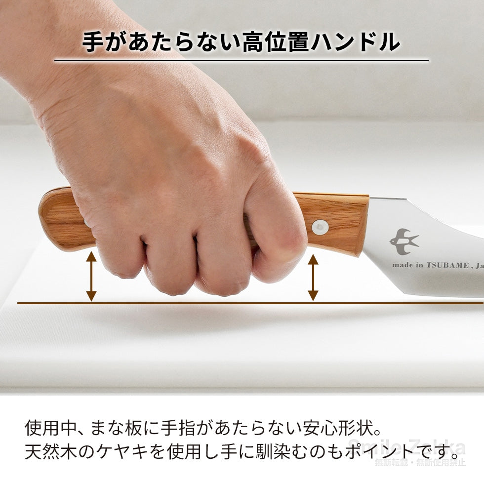 | 波刃と直刃の2種類の刃の組み合わせによりパンの切りくずを抑えながらきれいに切り分けられる短いパンナイフ。 波刃のきっかけにより硬いフランスパンも、刃が入らずに潰れやすい柔らかい食パンも簡単に切れます 刃は特殊鋼材を使用し、見た目の美しさと同時に摩擦を減らし切れ味をアップさせた鏡面仕上げです 天然木のケヤキを使用した手になじむ背通しハンドルで、まな板に指が当らない親切設計です 刃渡り16.5cmと短いので、パンをカットする以外に普段のお料理にも活躍してくれますし、収納性も大幅にアップしました。 アウトドアに持ち出して、ホットサンド用のナイフとしても便利です。 金物の街「燕市」で製造しています。 |