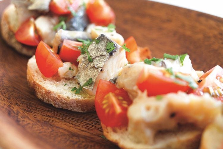 小豆島の漁師が一本釣りしたサワラを新鮮なうちにハーブなどを加え、オリーブオイルで煮込みました。