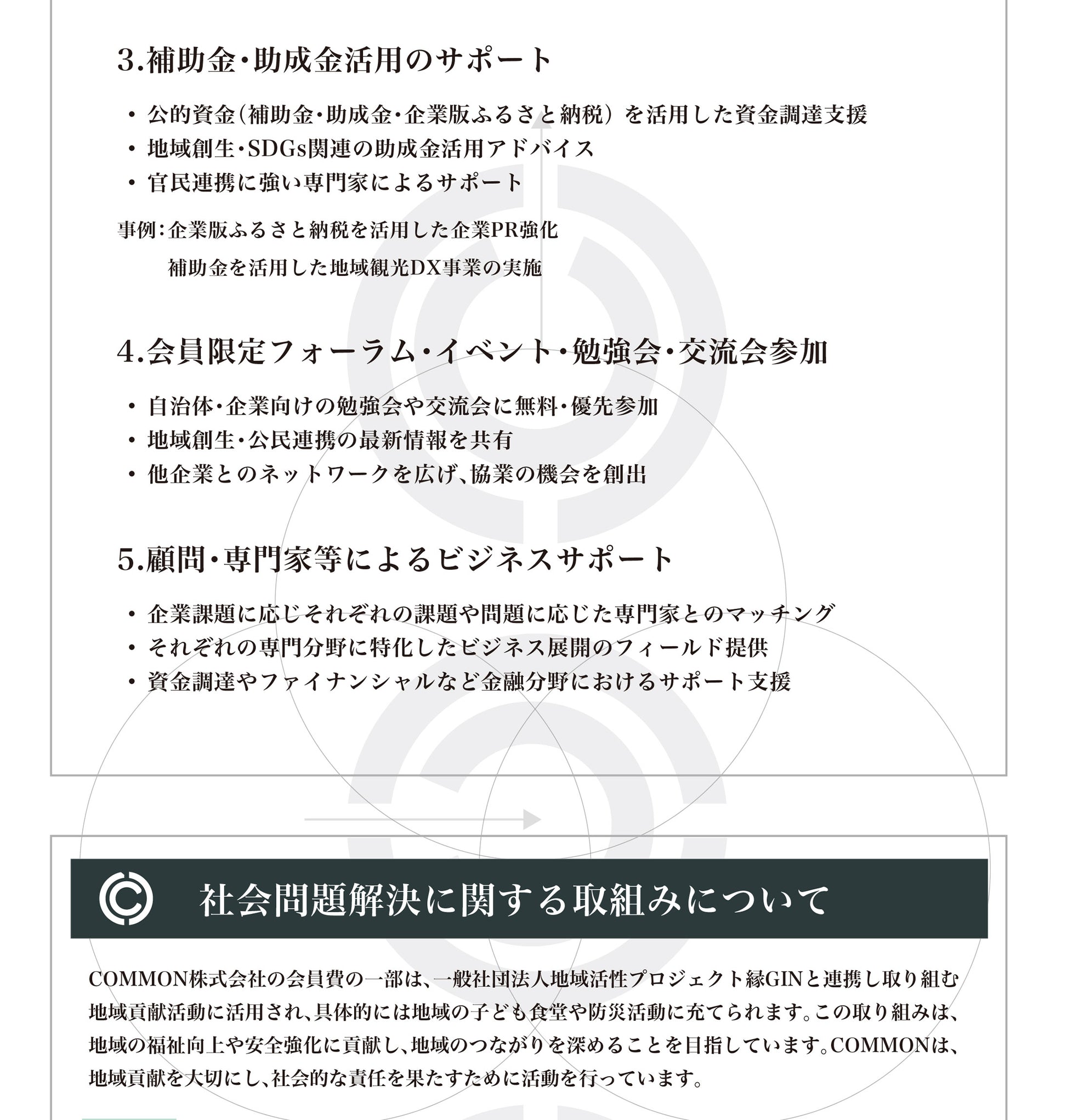 株式会社COMMONが運営するプラットフォームでは会員様のお役に立てるよう、環境作りをして参りたいと存じます。